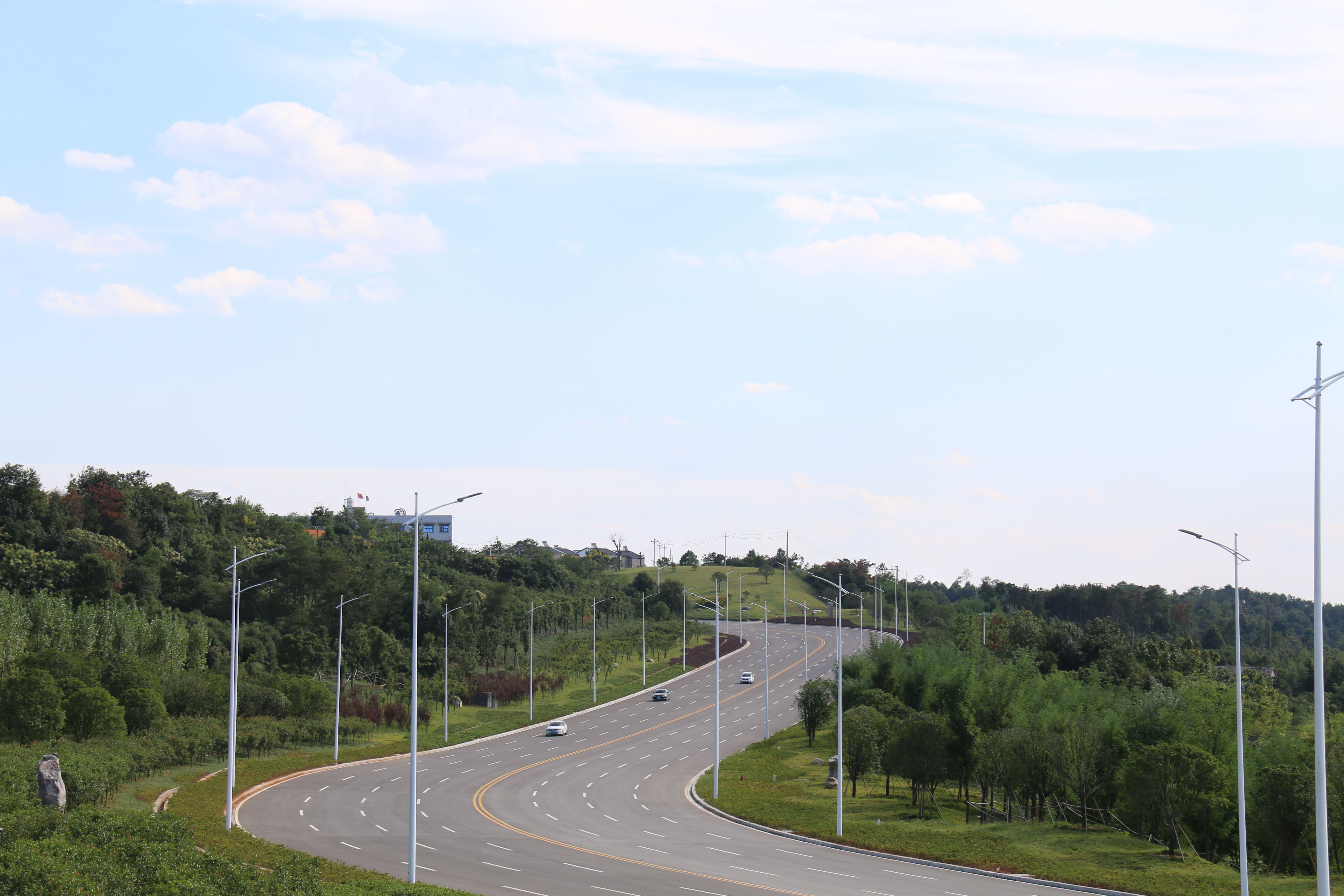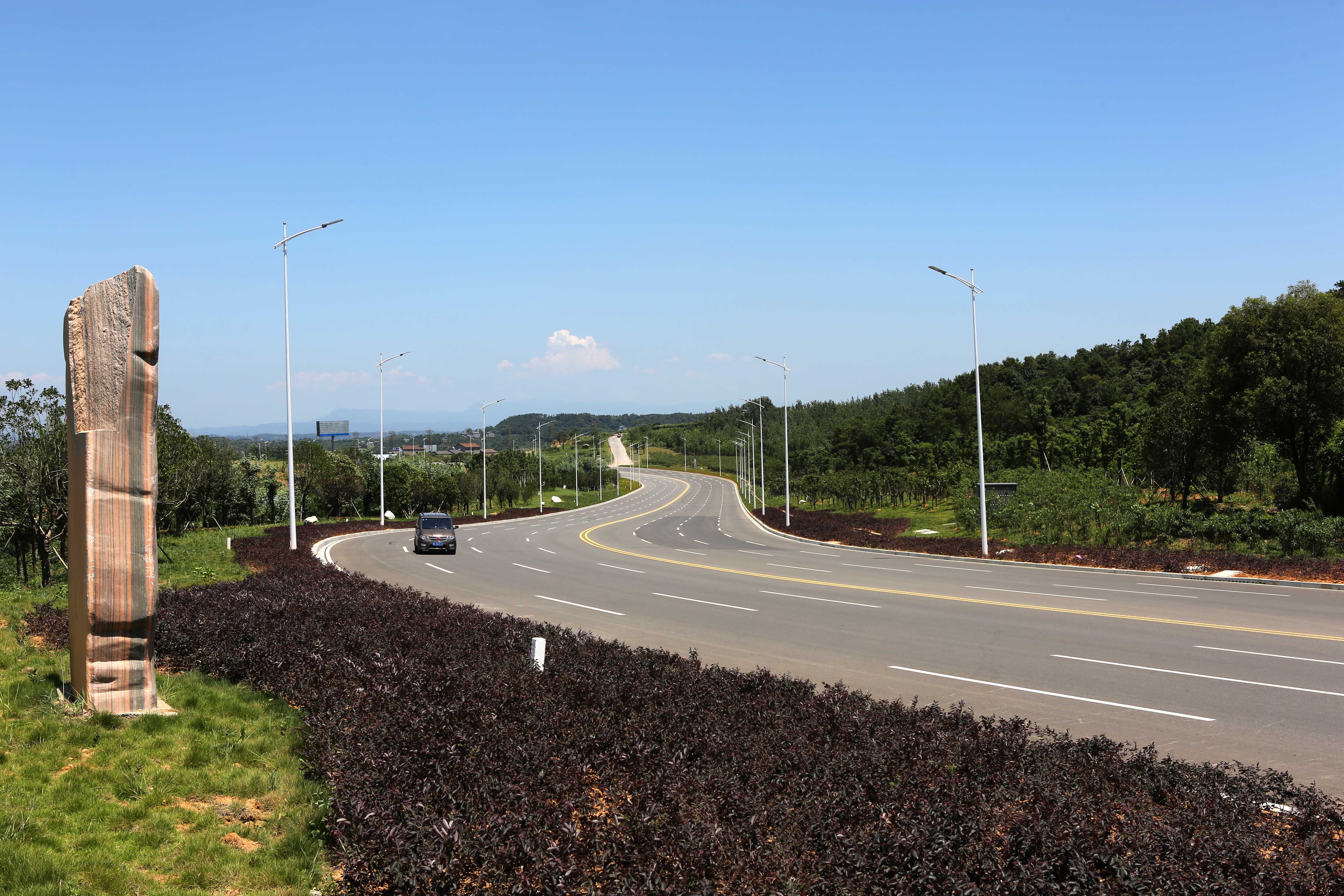 宜昌三峽機場路綜合改造工程。項目起于漢宜高速公路猇亭收費站,止于三峽機場候機樓廣場西側(cè),道路全長3558米。項目分兩期實施:一期工程為道路及景觀綠化工程,將現(xiàn)有道路由雙向四車道拓寬為雙向八車道,道路等級為城市主干道,設(shè)計車速為60公里/小時,道路寬度37米,并增設(shè)先鋒路和七里沖路兩處下穿通道。二期工程為三峽機場候機樓站前廣場和漢宜高速公路猇亭收費站改造。工程概算投資3.91億元。項目2013年10月開工建設(shè)。